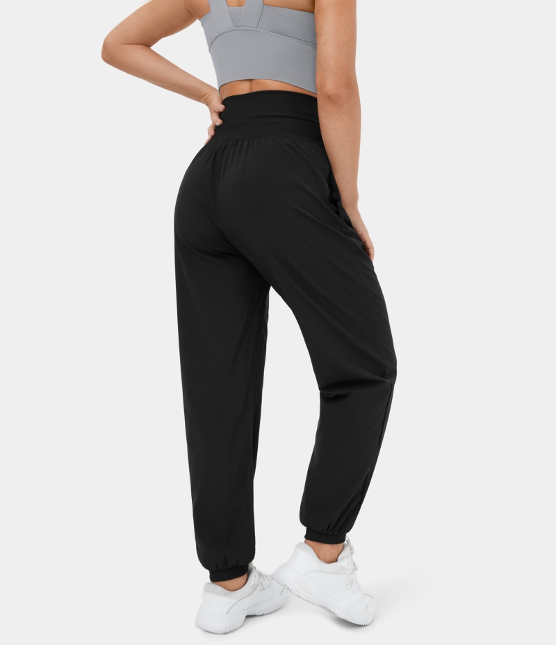 :: Halara Super High Waisted Drawstring Side Pocket Casual Women's Jogger Black | 359271-JKW