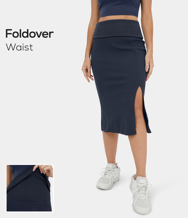Halara Super High Waisted Foldover Split Waffle Bodycon Midi Casual Women's Skirts Overture | 803296-IYV
