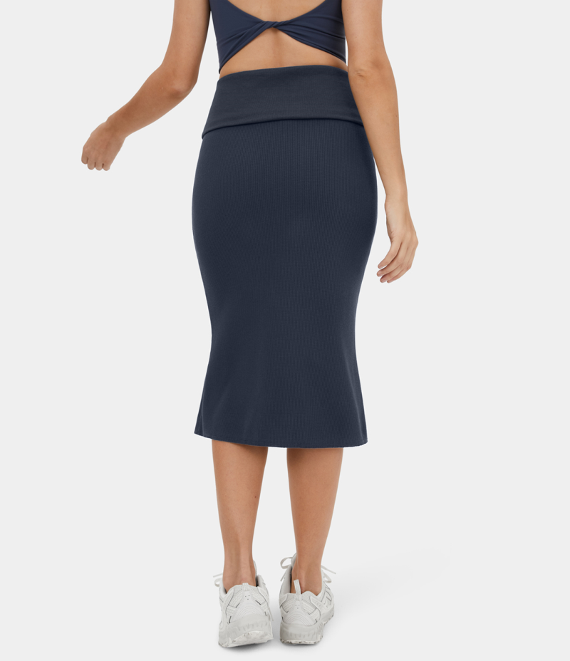 :: Halara Super High Waisted Foldover Split Waffle Bodycon Midi Casual Women's Skirts Overture | 803296-IYV