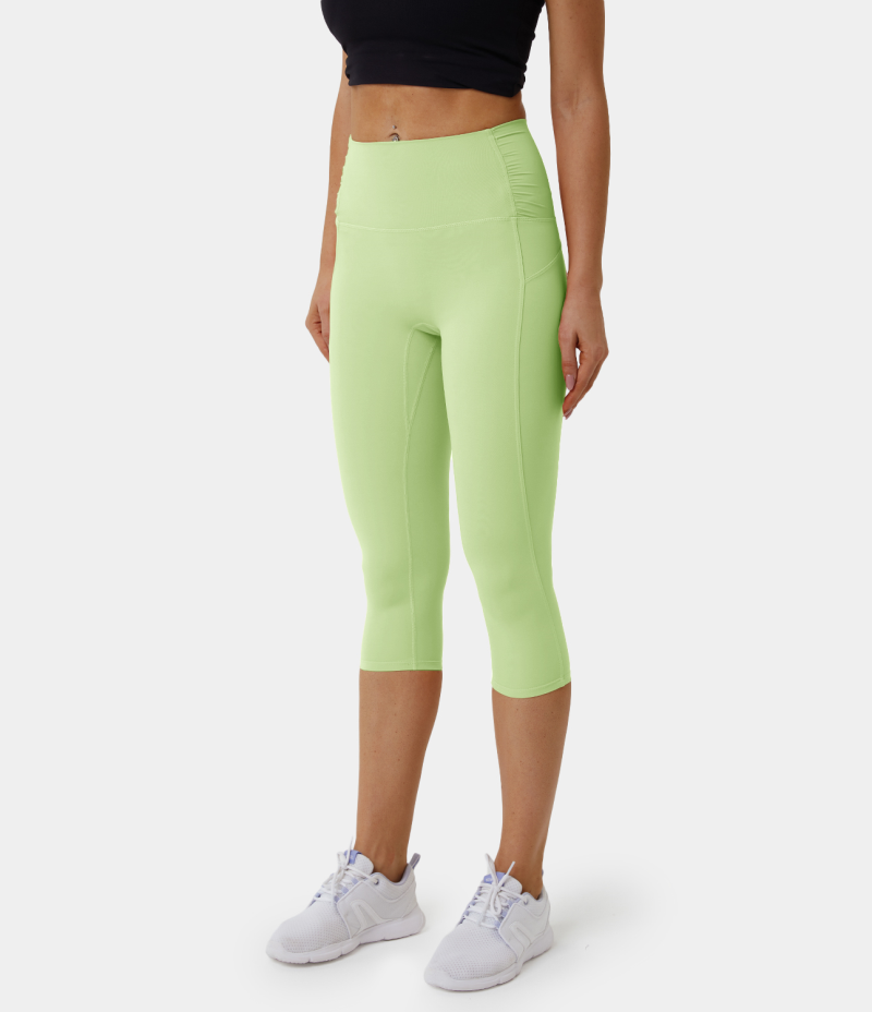 :: Halara Super High Waisted Side Ruched Capri Women's Leggings Pale Green | 470698-BPF