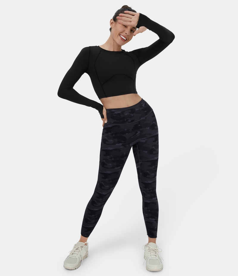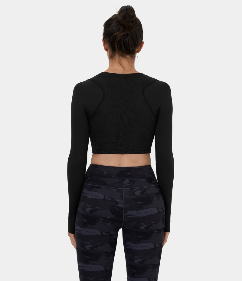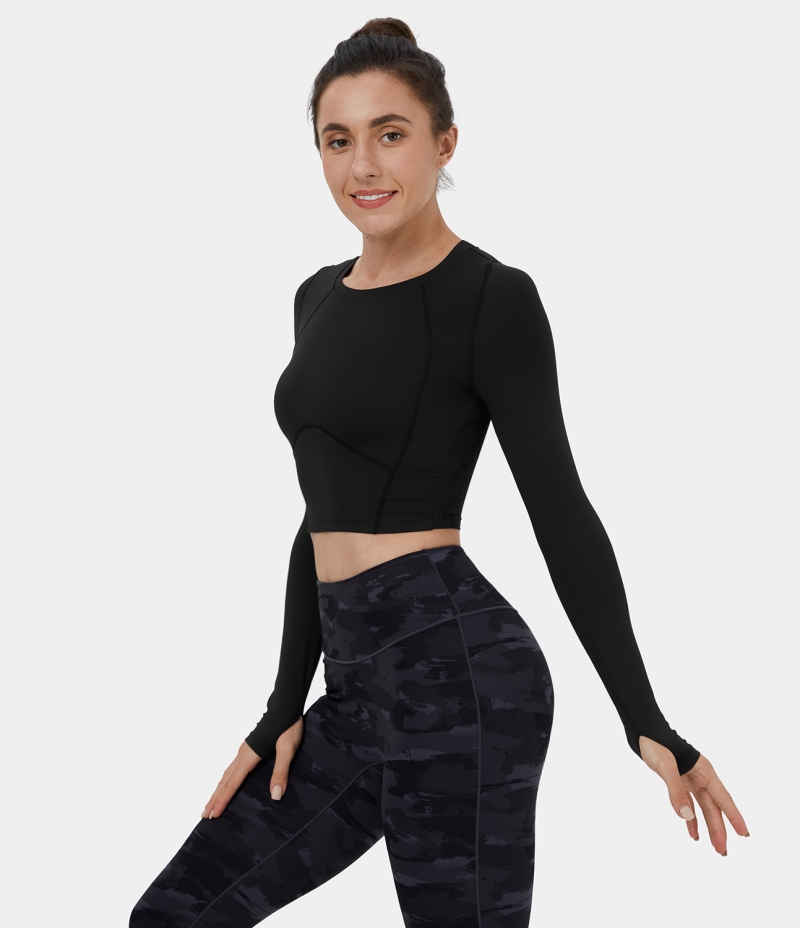 :: Halara Thumb Hole Corset Style Contrast Cropped Yoga Sports Women's Tops Black | POHQANK-73
