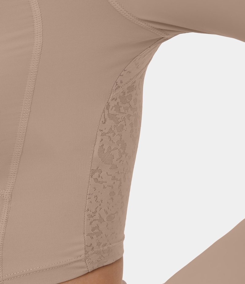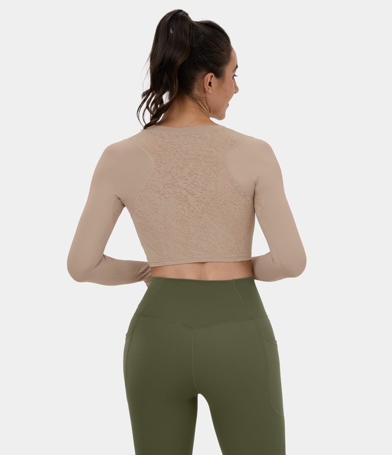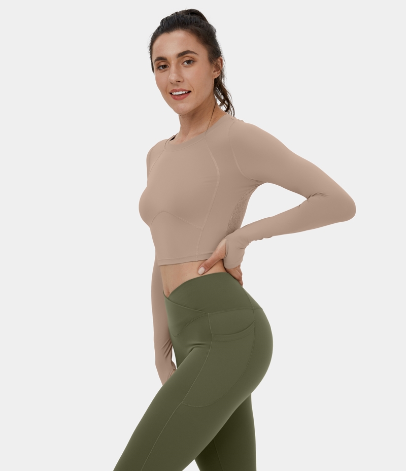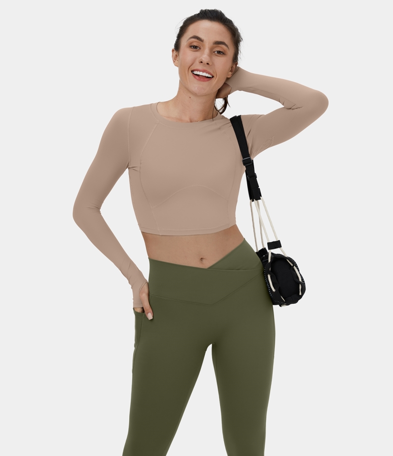 :: Halara Thumb Hole Corset Style Contrast Cropped Yoga Sports Women's Tops Light Taupe | FGUWRTC-46