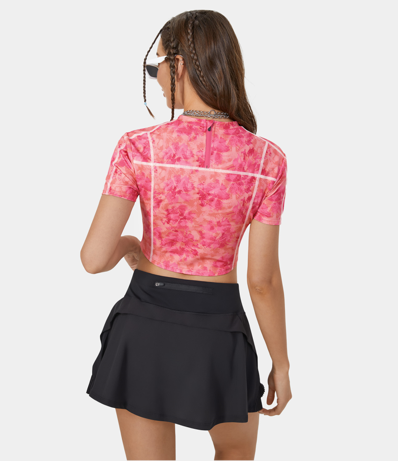 :: Halara Tie Dye Back Zipper Color Block Cropped Casual Sports Women's Tops Desert Rose tie dye(Hot pink) | ITMLOZE-83