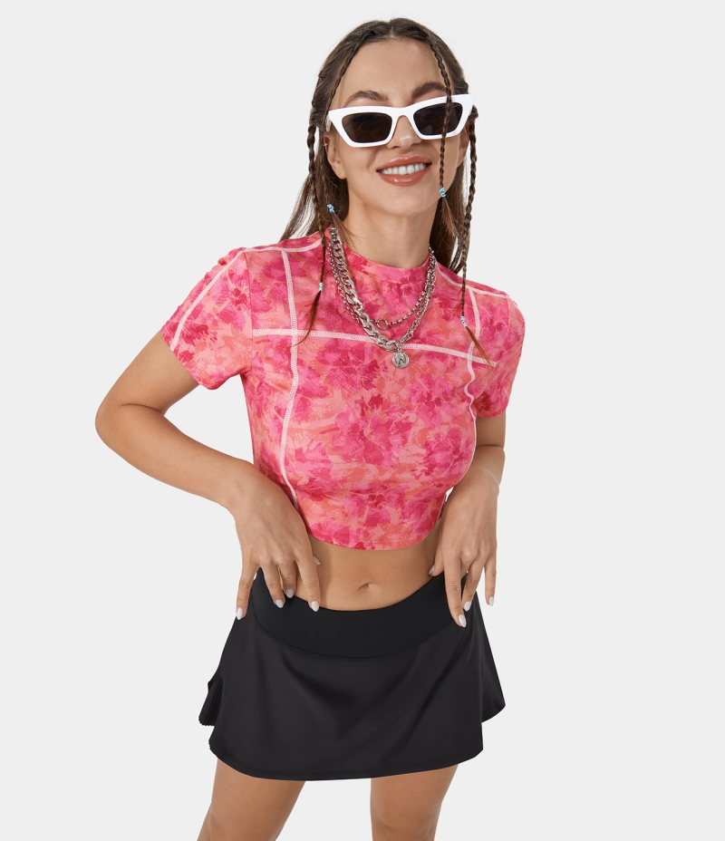 Halara Tie Dye Back Zipper Color Block Cropped Casual Sports Women's Tops Desert Rose tie dye(Hot pink) | ITMLOZE-83