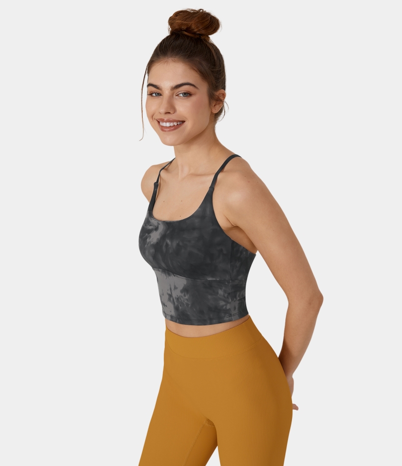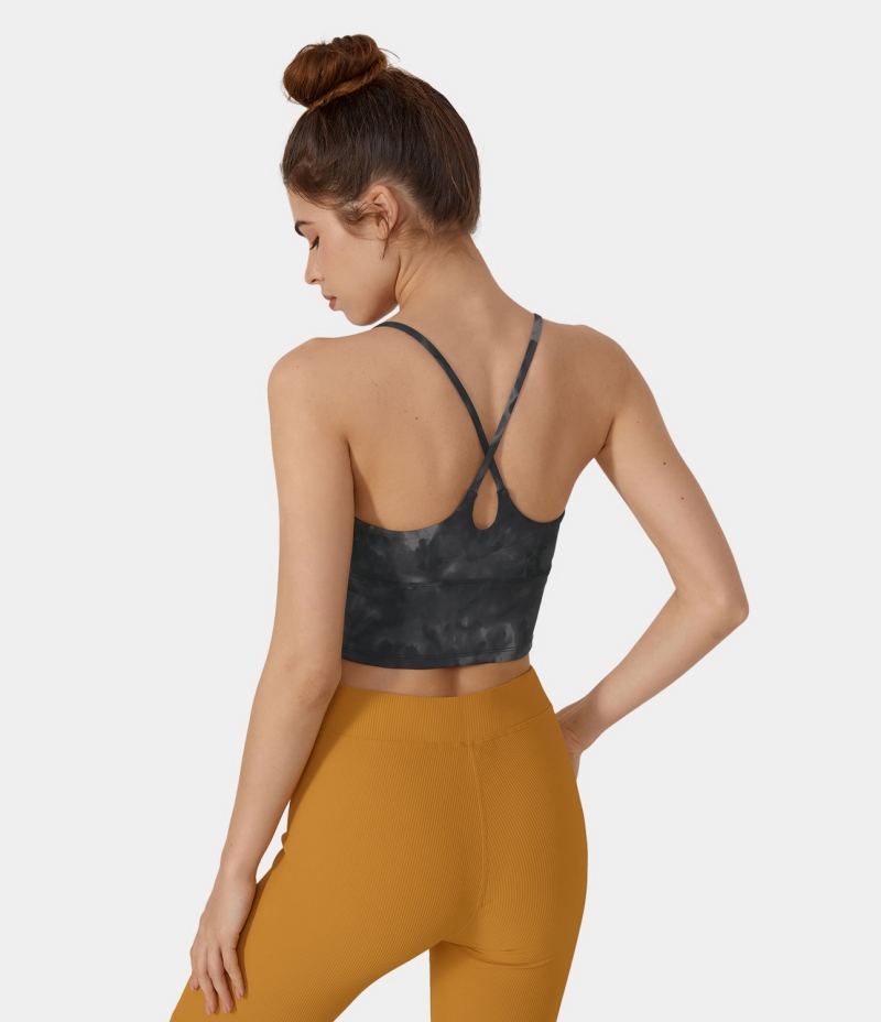 Halara Tie Dye Crisscross Backless Cropped Yoga Tank Women's Tops Black Mist | ZJCLTHX-37