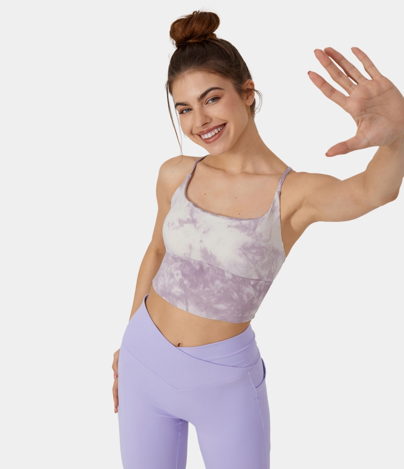 :: Halara Tie Dye Crisscross Backless Cropped Yoga Tank Women's Tops Tie-dye Lilac Purple | TDMRPLW-68
