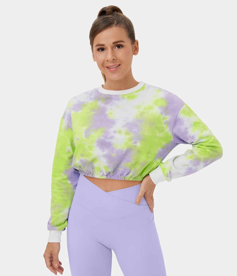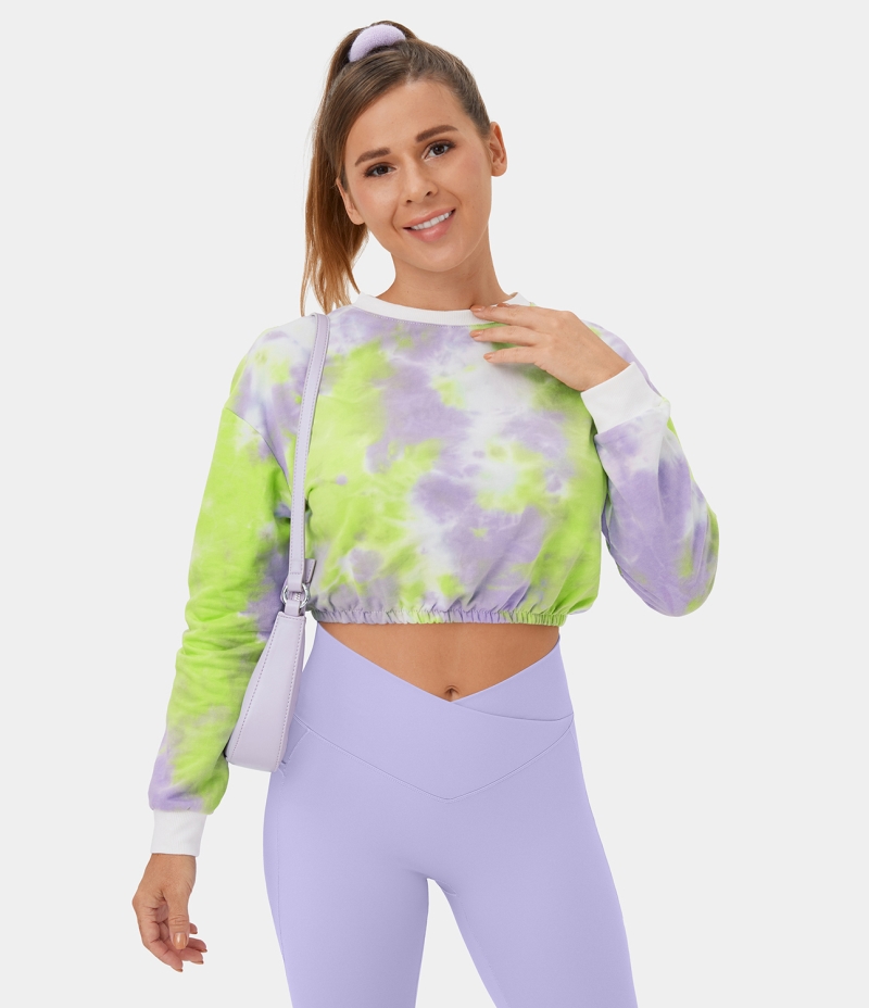 :: Halara Tie Dye Cropped Casual Sweatshirt Women's Tops Tie-dye Purple Green | LNMXYAT-17