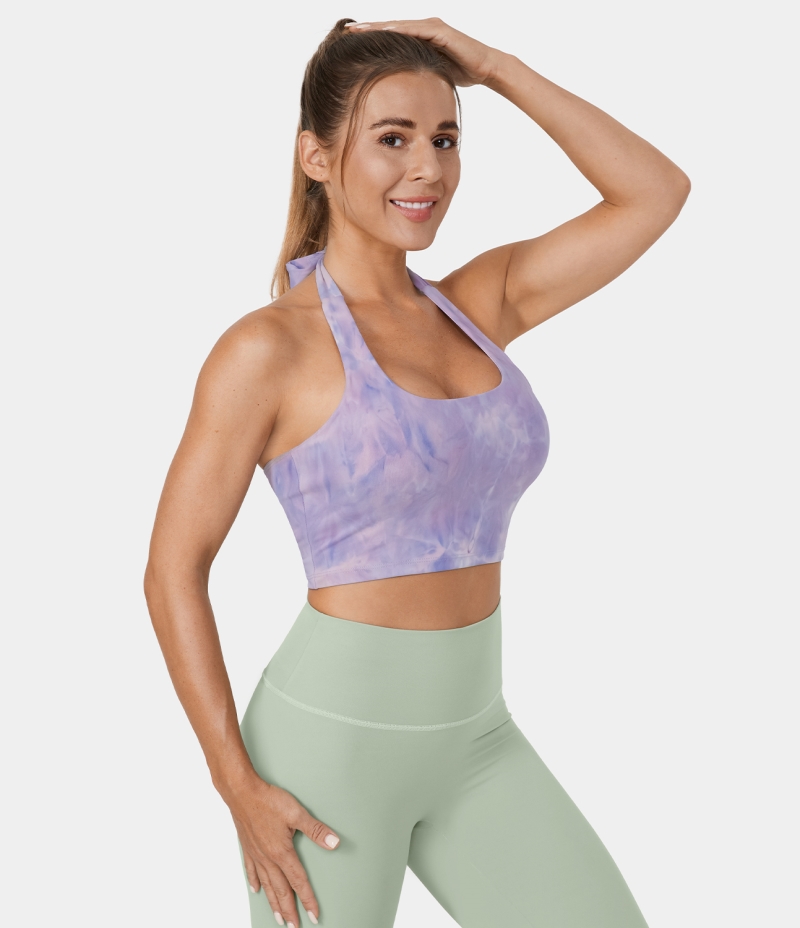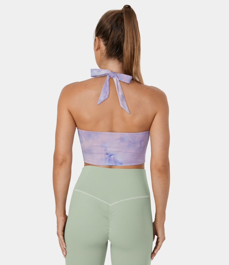 :: Halara Tie Dye Halter Lace Up Cropped Yoga Tank Women's Tops Tie-dye Light Purple | IKRDCJN-03