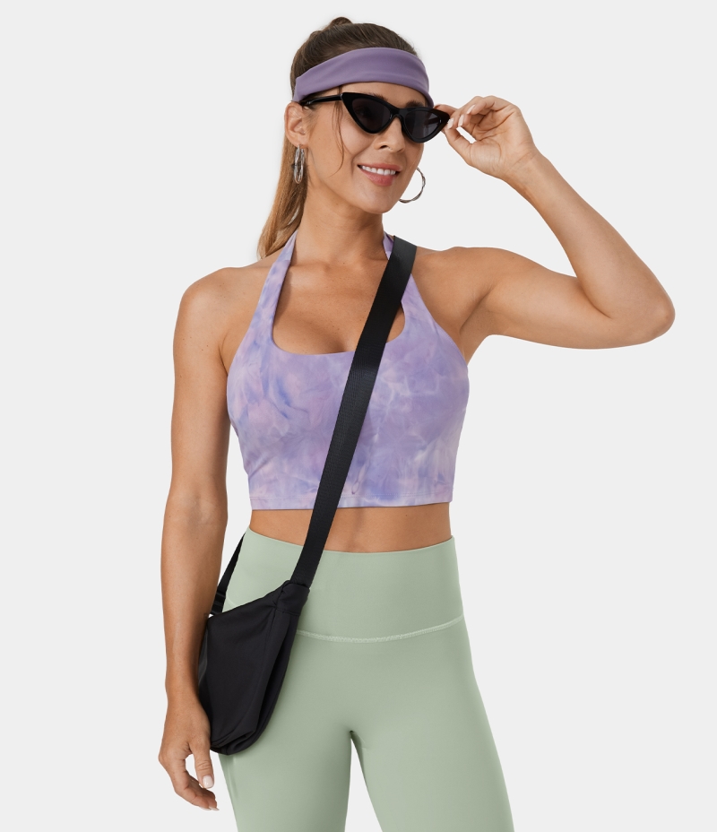 Halara Tie Dye Halter Lace Up Cropped Yoga Tank Women's Tops Tie-dye Light Purple | IKRDCJN-03