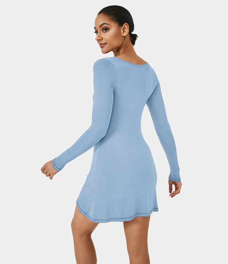 :: Halara Tie Front 2-in-1 Side Pocket Sports Women's Dress Deep Powder Blue | 518479-KMQ