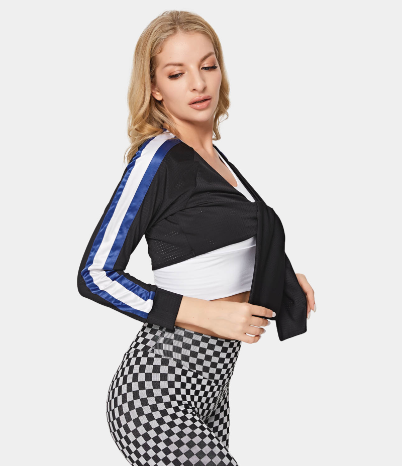 :: Halara Tie Front Long Sleeve Contrast Trim Sports-No Tank Women's Tops Black | EVDULIM-69