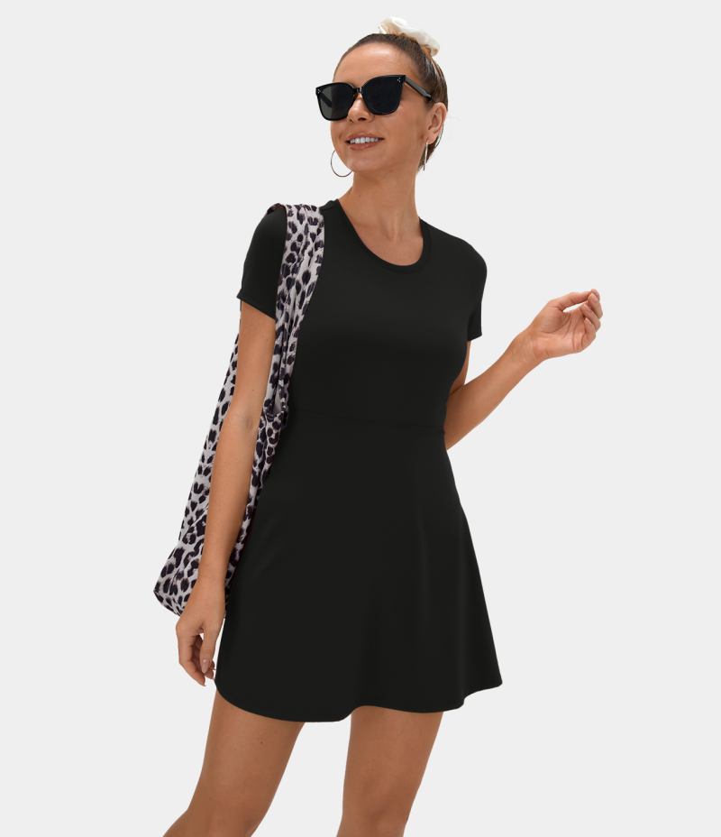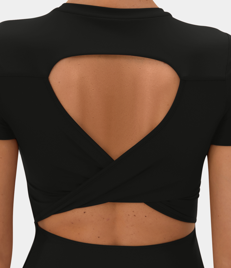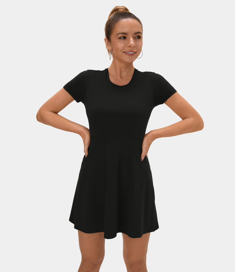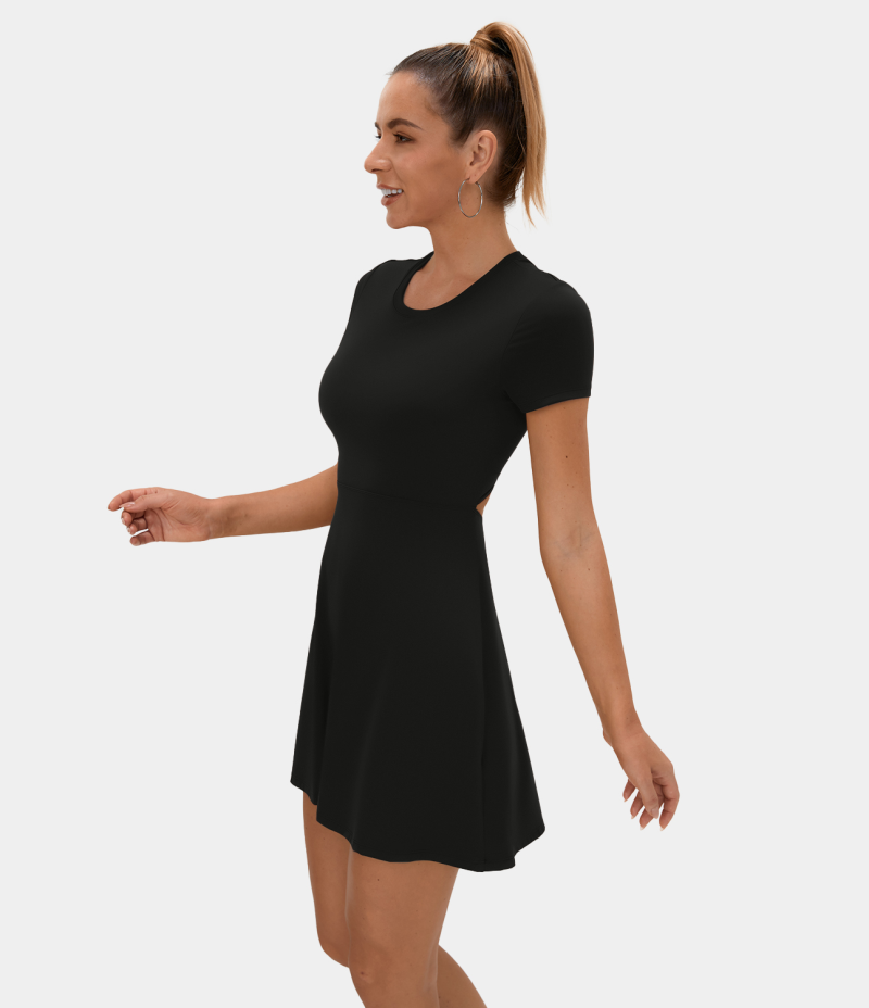 :: Halara Twisted Cut Out Barre Ballet Dance Flare Women's Dress Black | 168732-ACT