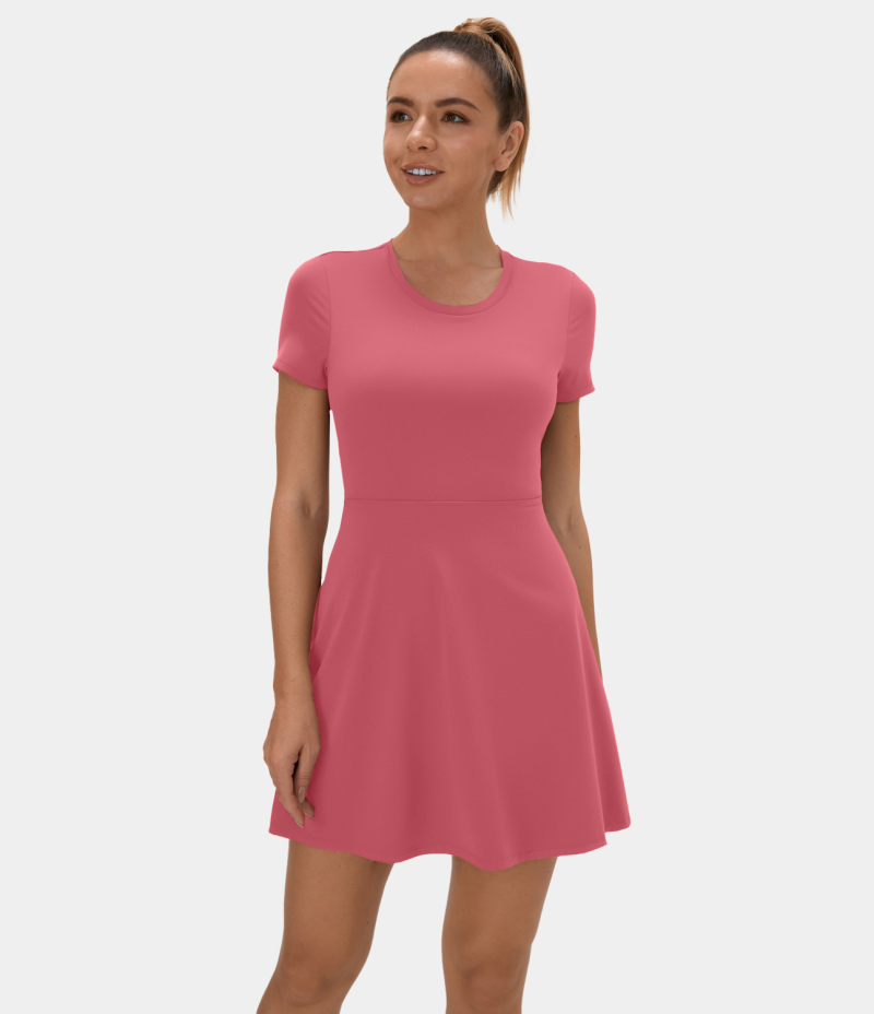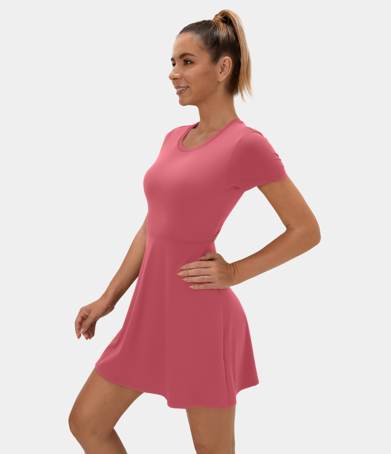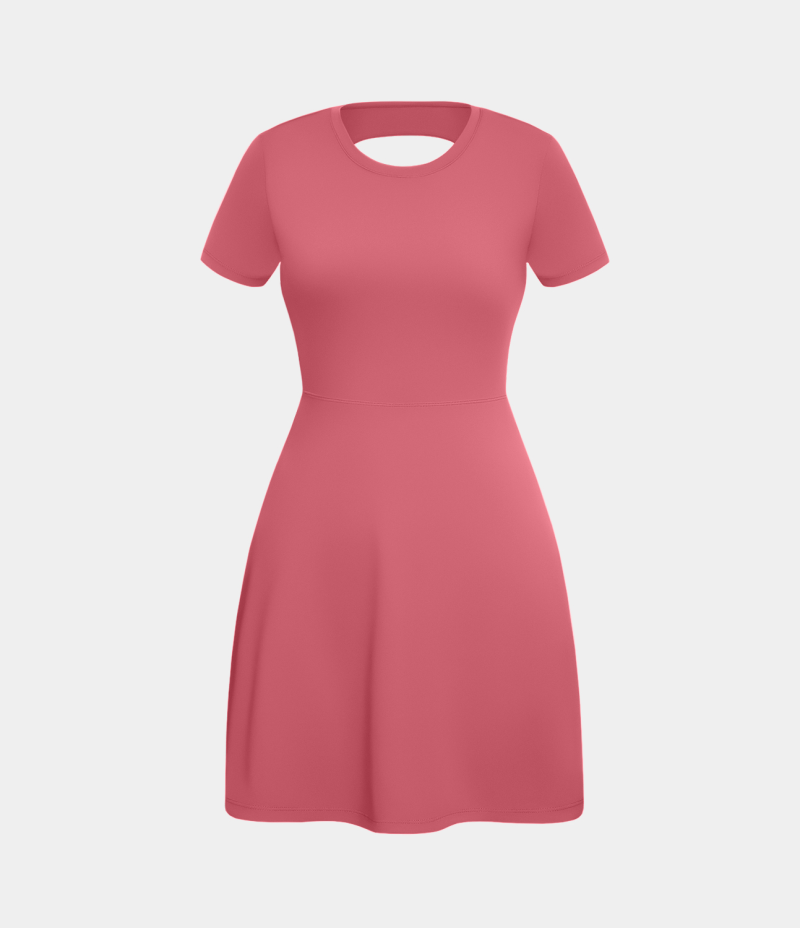 :: Halara Twisted Cut Out Barre Ballet Dance Flare Women's Dress Desert Rose | 289061-HBM