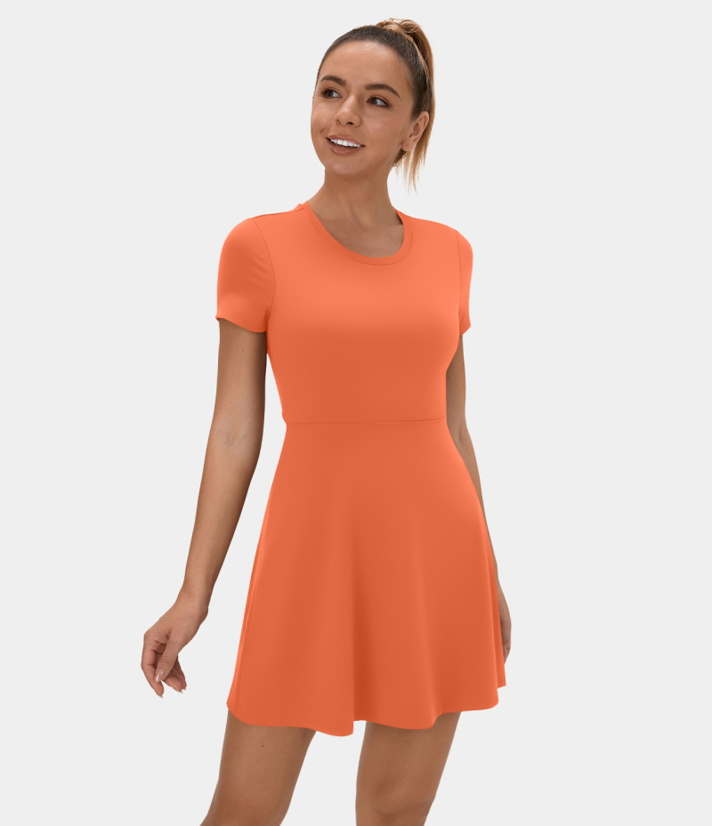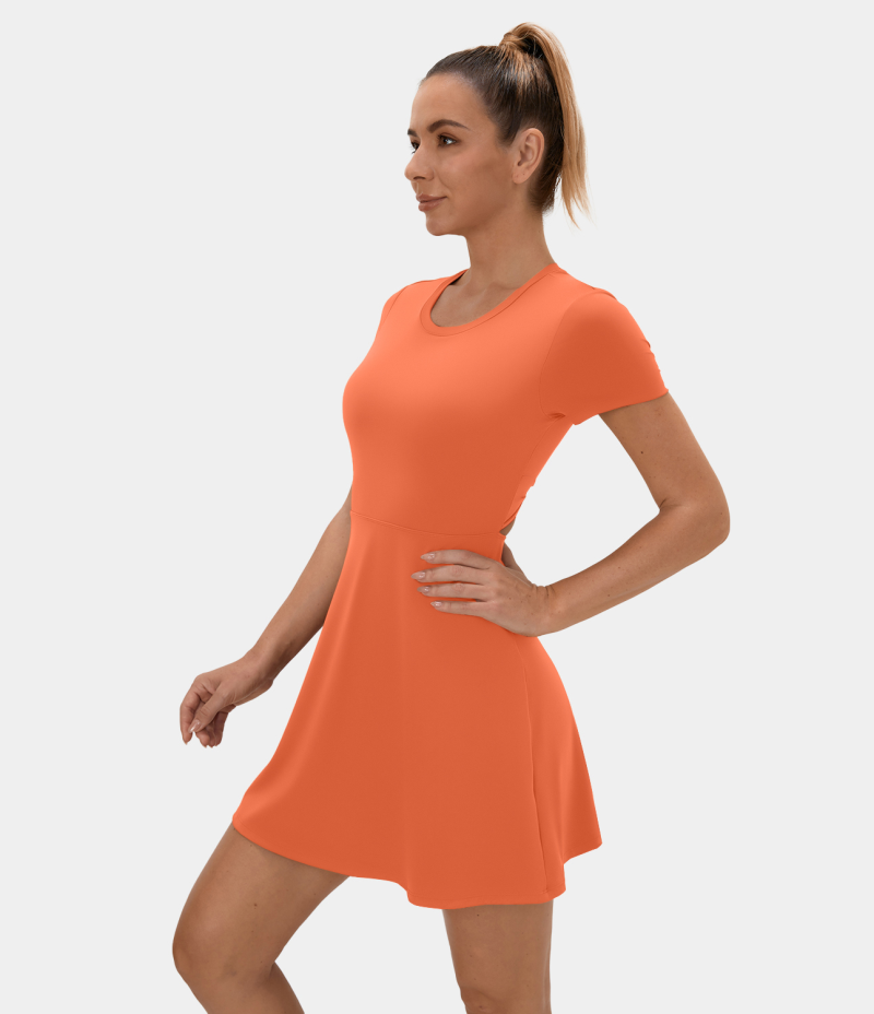 :: Halara Twisted Cut Out Barre Ballet Dance Flare Women's Dress Dusty Orange | 538471-OFV