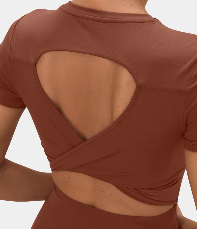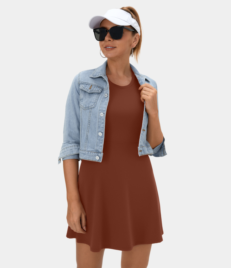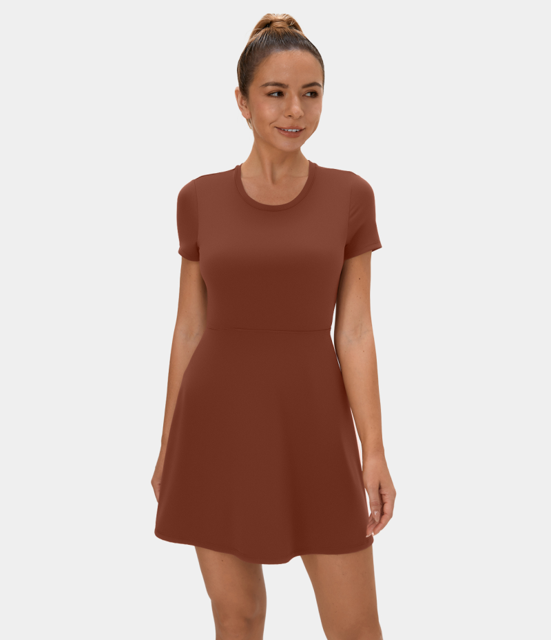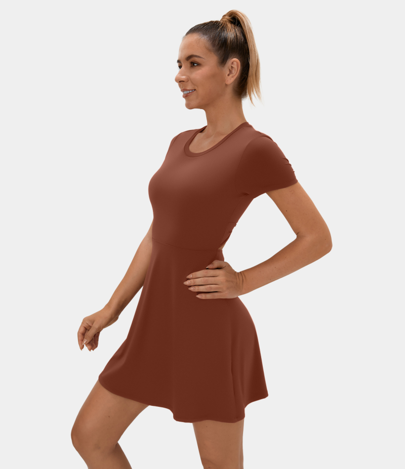 :: Halara Twisted Cut Out Barre Ballet Dance Flare Women's Dress Russet Brown | 649013-TYM