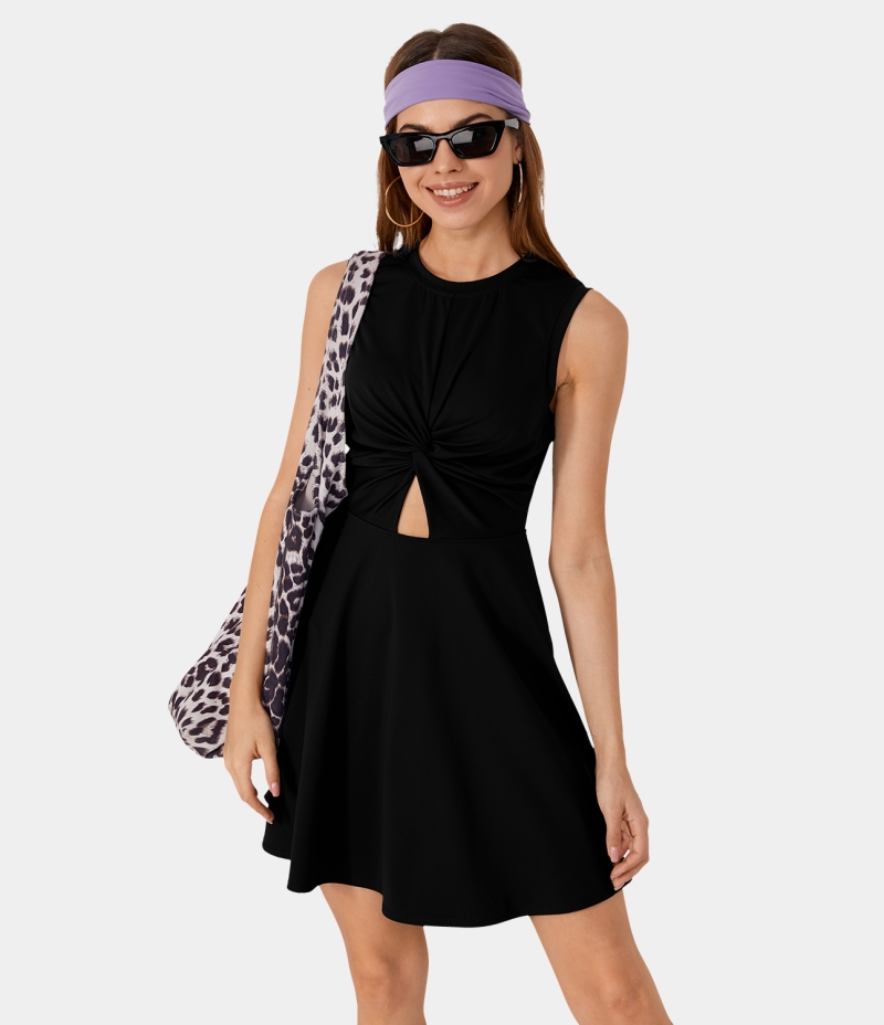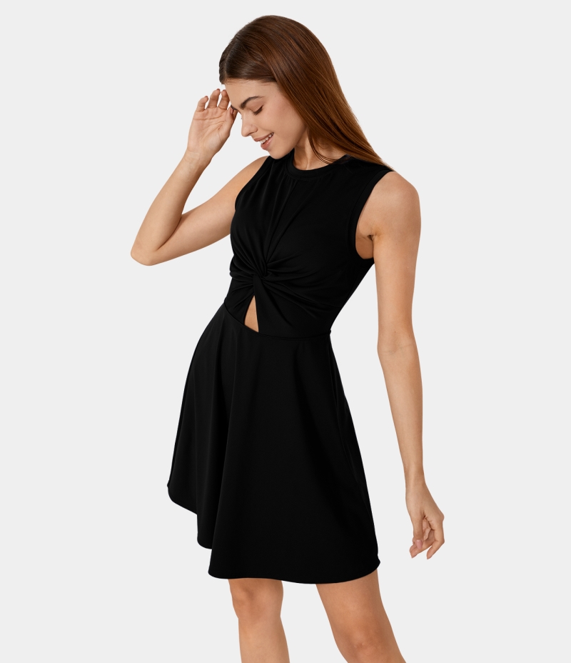 Halara Twisted Cut Out Side Pocket 2-Piece Flare Women's Dress Black | 965412-VCL
