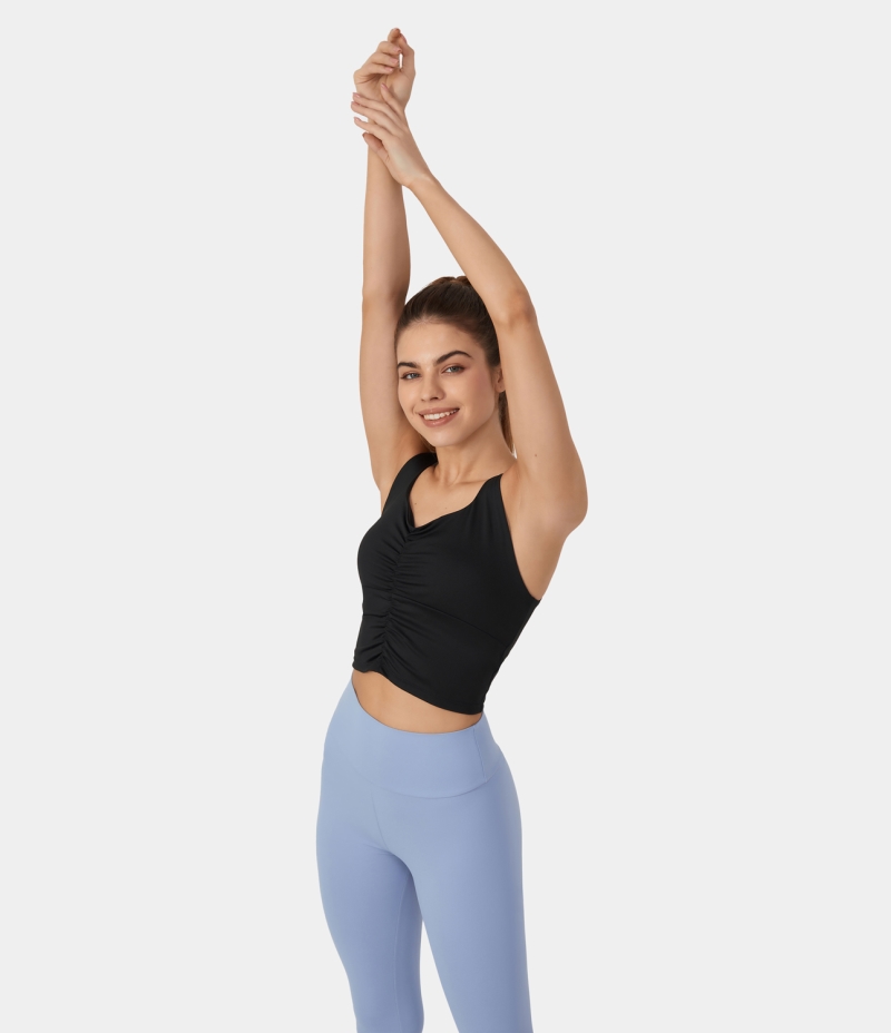 :: Halara Twisted Spaghetti Straps Ruched Cropped Yoga Tank Women's Tops Black | CBWLEID-56