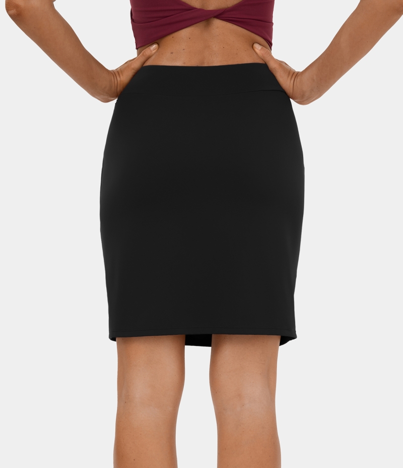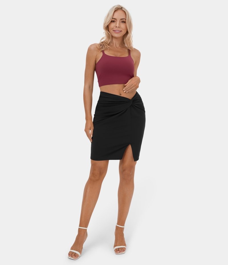 :: Halara Twisted Split Hem Bodycon Mini Casual-Front and Back Wearable Women's Skirts Black | 701548-OYV