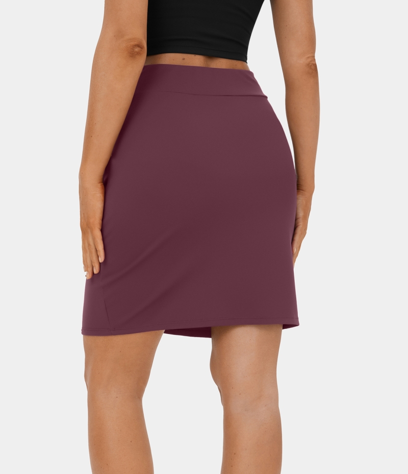 :: Halara Twisted Split Hem Bodycon Mini Casual-Front and Back Wearable Women's Skirts New Maroon | 948035-OGY
