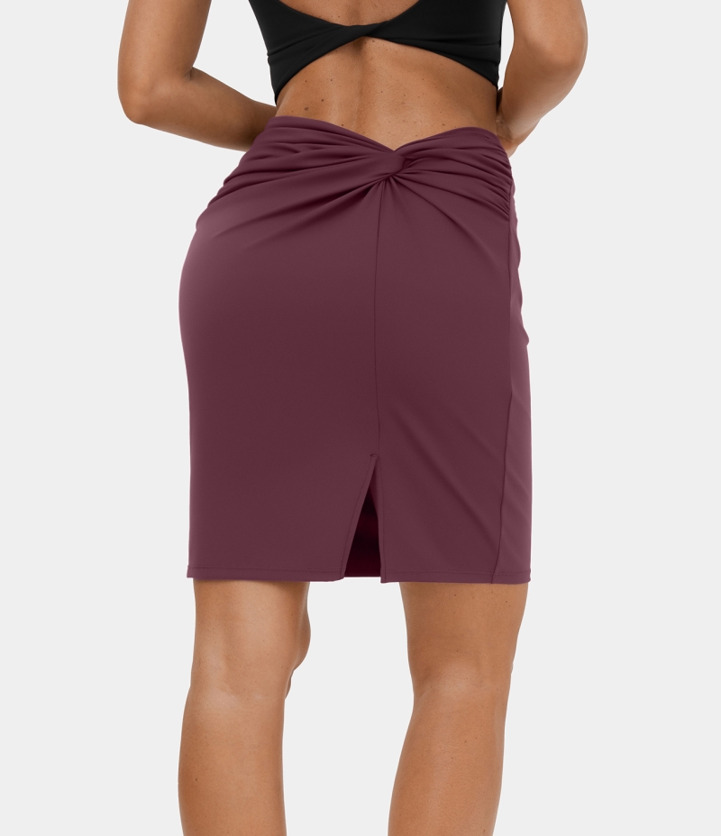 Halara Twisted Split Hem Bodycon Mini Casual-Front and Back Wearable Women's Skirts New Maroon | 948035-OGY