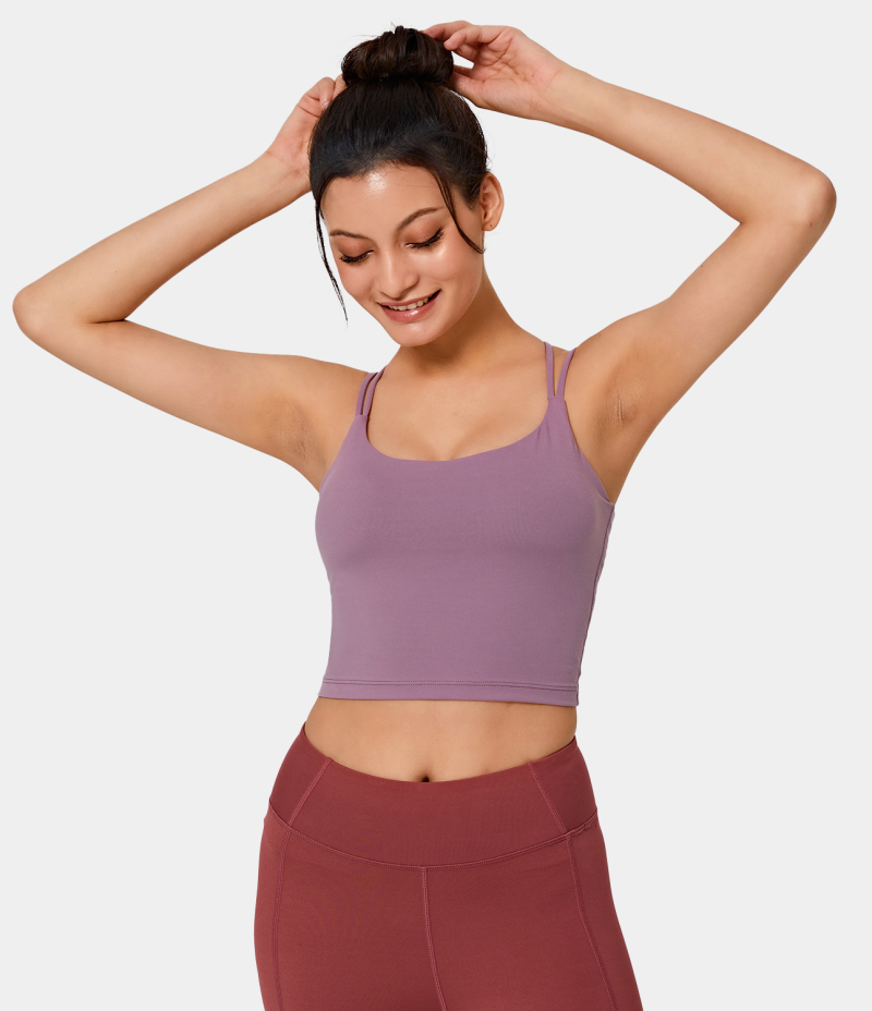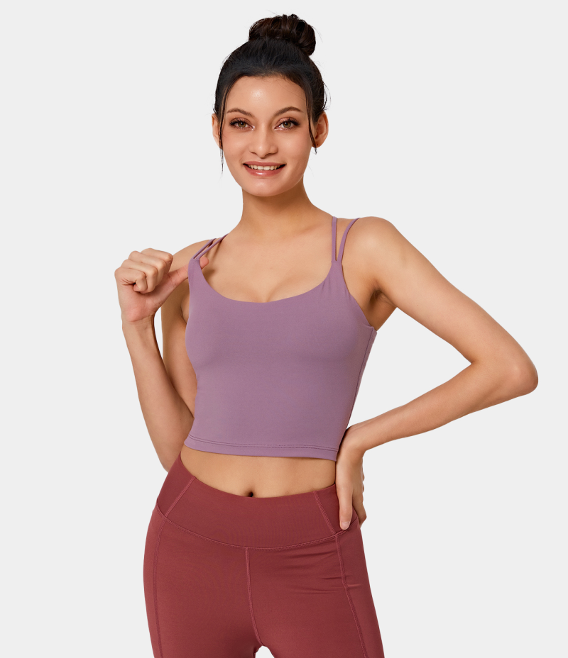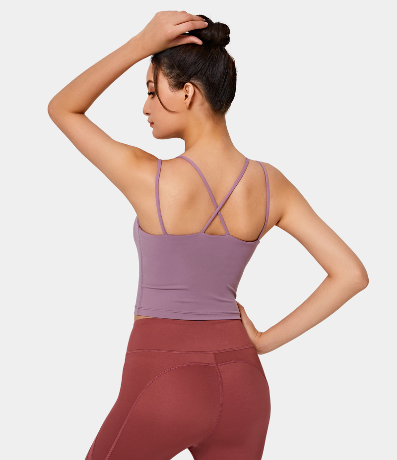 :: Halara U Neck Backless Crisscross Plain Cropped Tank Women's Tops Dove Purple | WCVKLOX-36