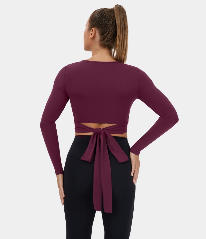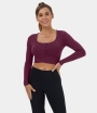 Halara U Neck Button Crossover Hem Lace Up Cropped Yoga Sports Women's Tops Red Violet | COLDPEQ-41