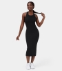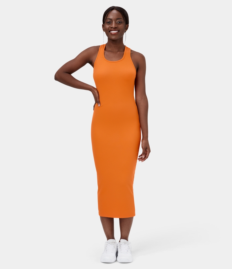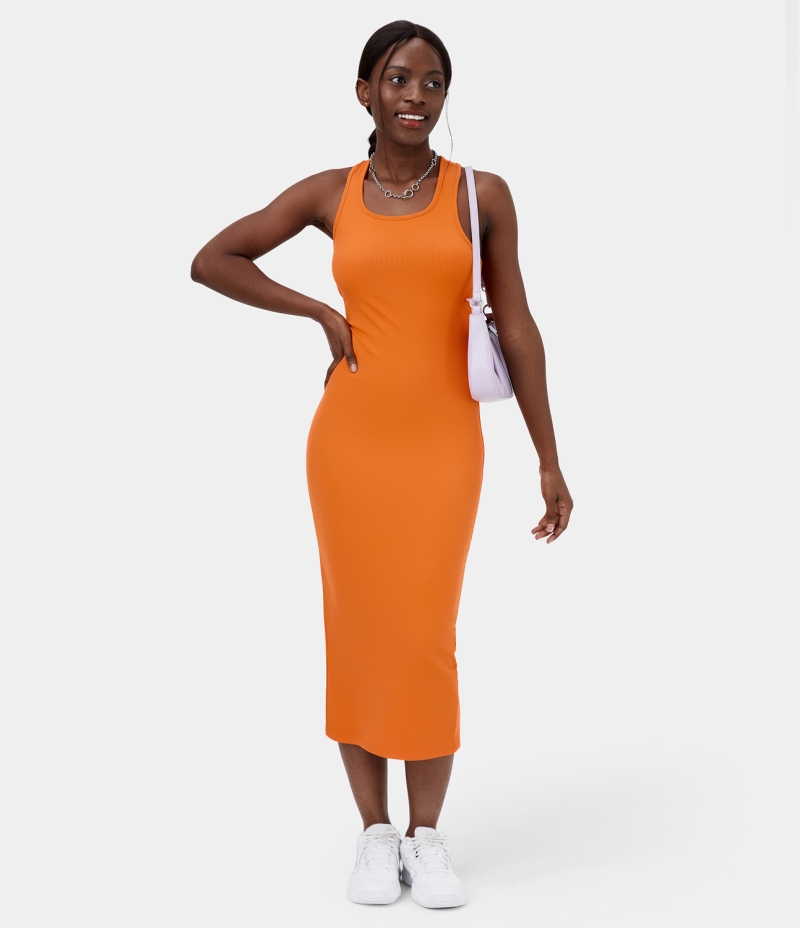 Halara U Neck Crisscross Lace Up Split Bodycon Midi Casual Women's Dress Ash Orange | 094713-IBC