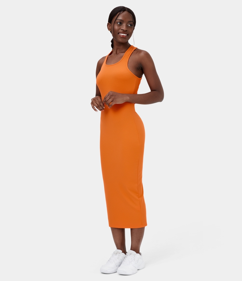 Halara U Neck Crisscross Lace Up Split Bodycon Midi Casual Women's Dress Ash Orange | 137285-ODK