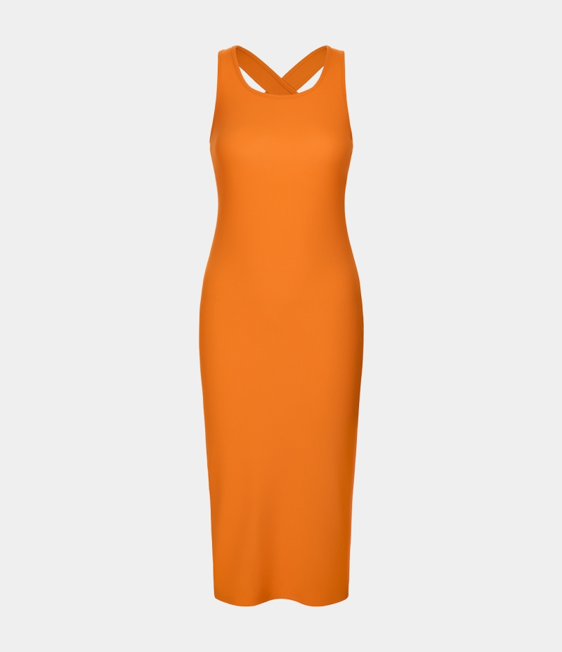 :: Halara U Neck Crisscross Lace Up Split Bodycon Midi Casual Women's Dress Ash Orange | 137285-ODK