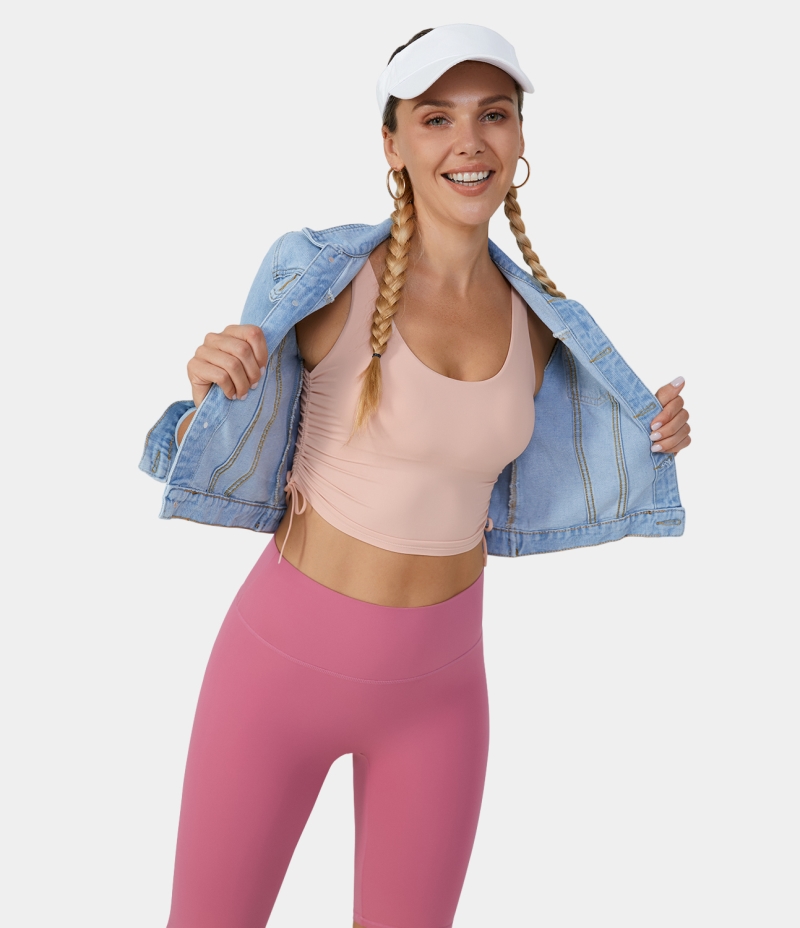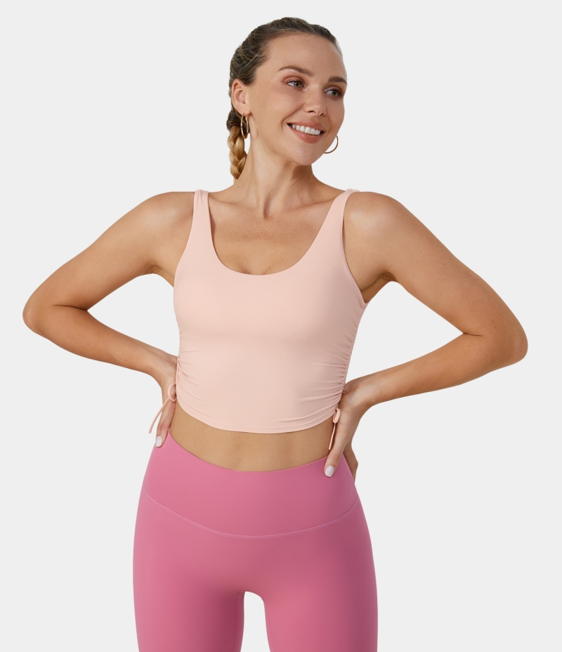 :: Halara U Neck Side Drawstring Cropped Yoga Tank Women's Tops Delicacy | BCSKNFA-80
