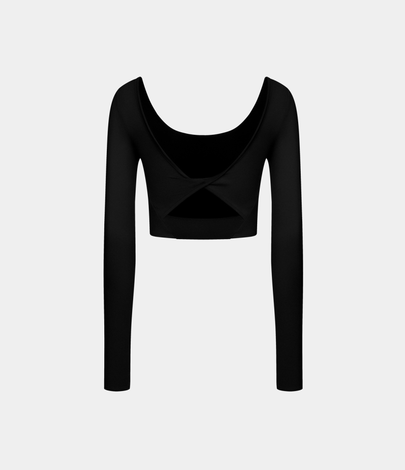:: Halara U Neck Thumb Hole Backless Twisted Cropped Sports Women's Tops Black | ZKHFRID-29