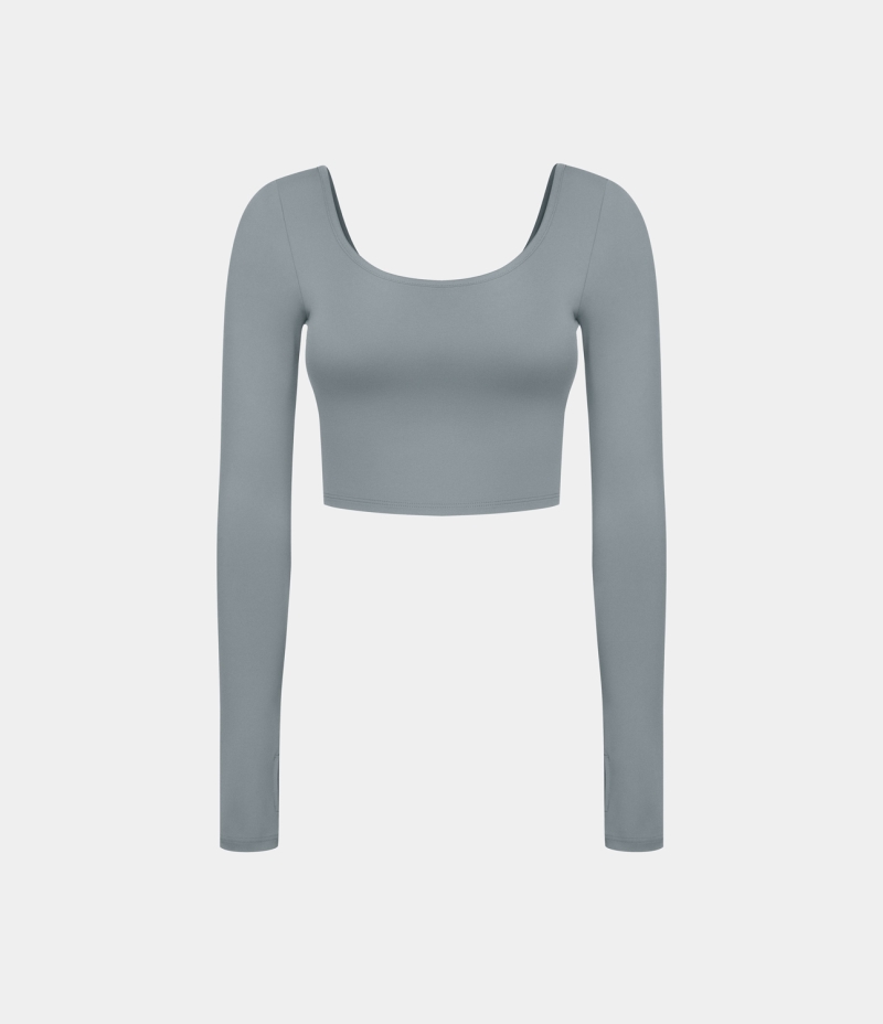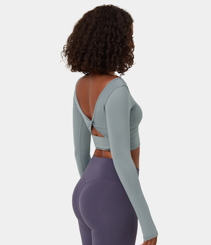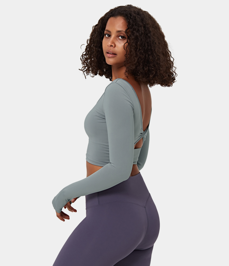 Halara U Neck Thumb Hole Backless Twisted Cropped Sports Women's Tops Ice Blue | COTIEUV-72
