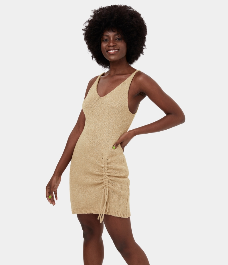 :: Halara V Neck Backless Side Drawstring Mini Casual Sweater Women's Tops Boulder | XDHIMRZ-73