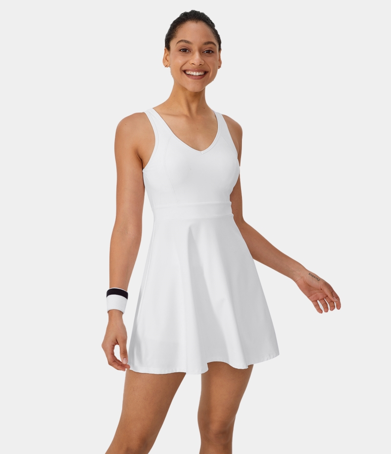 Halara V Neck Backless Side Pocket 2-Piece Flare Tennis Women's Dress White | 462173-MAO
