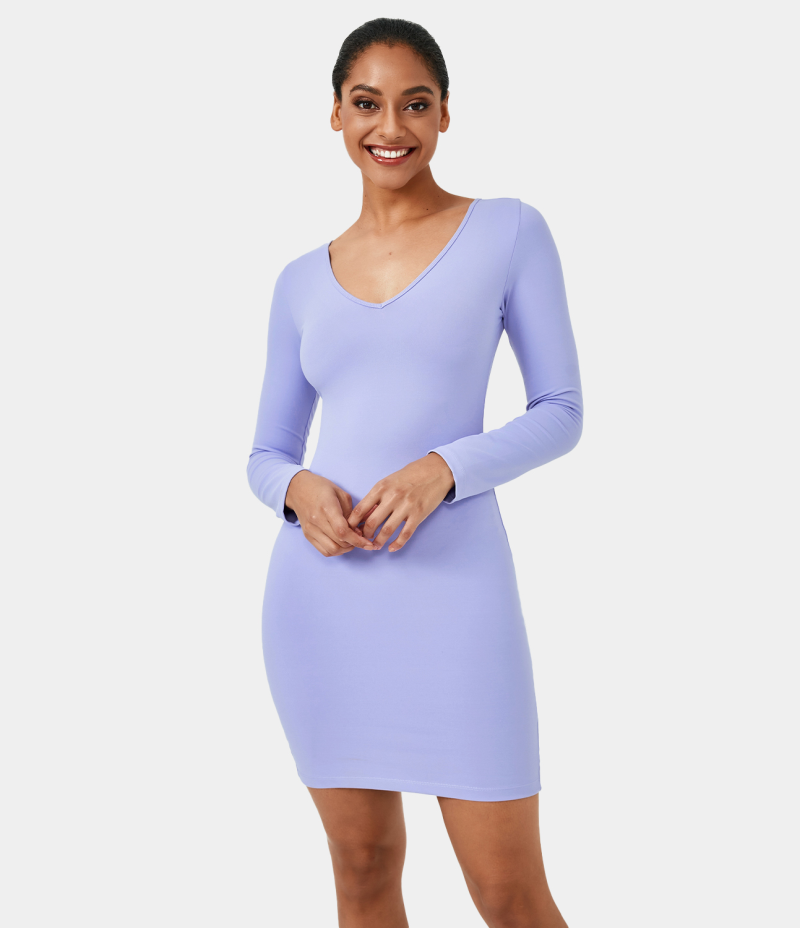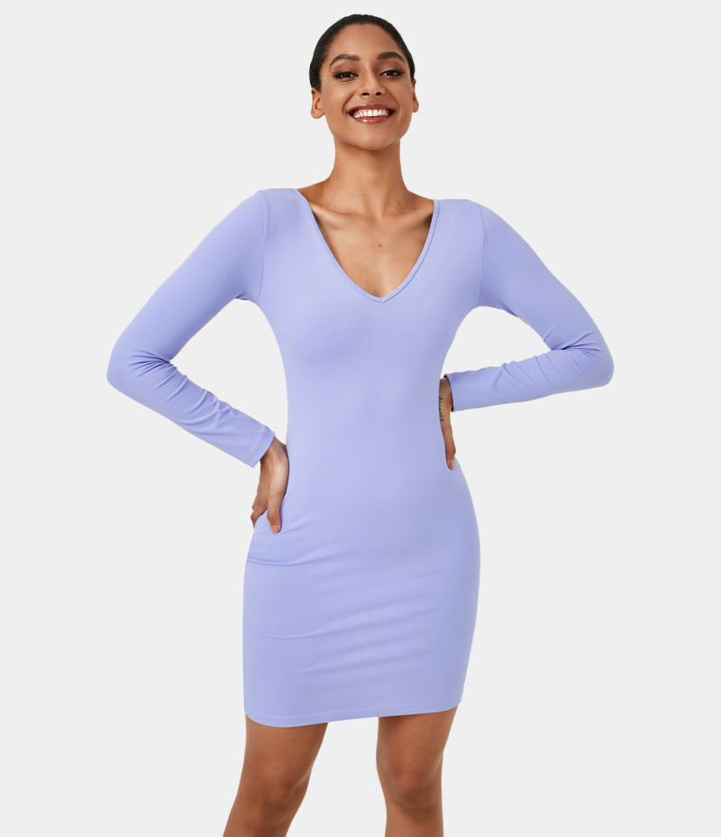 Halara V Neck Crisscross Split Hem Plain Women's Dress Light Purple | 435968-WAB