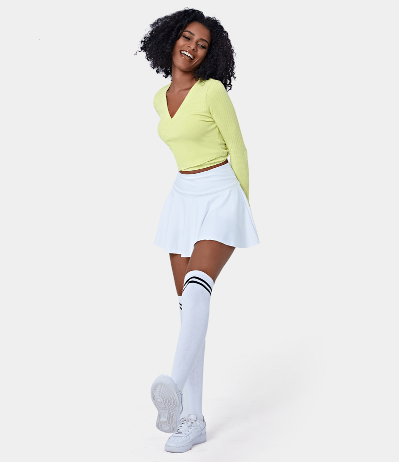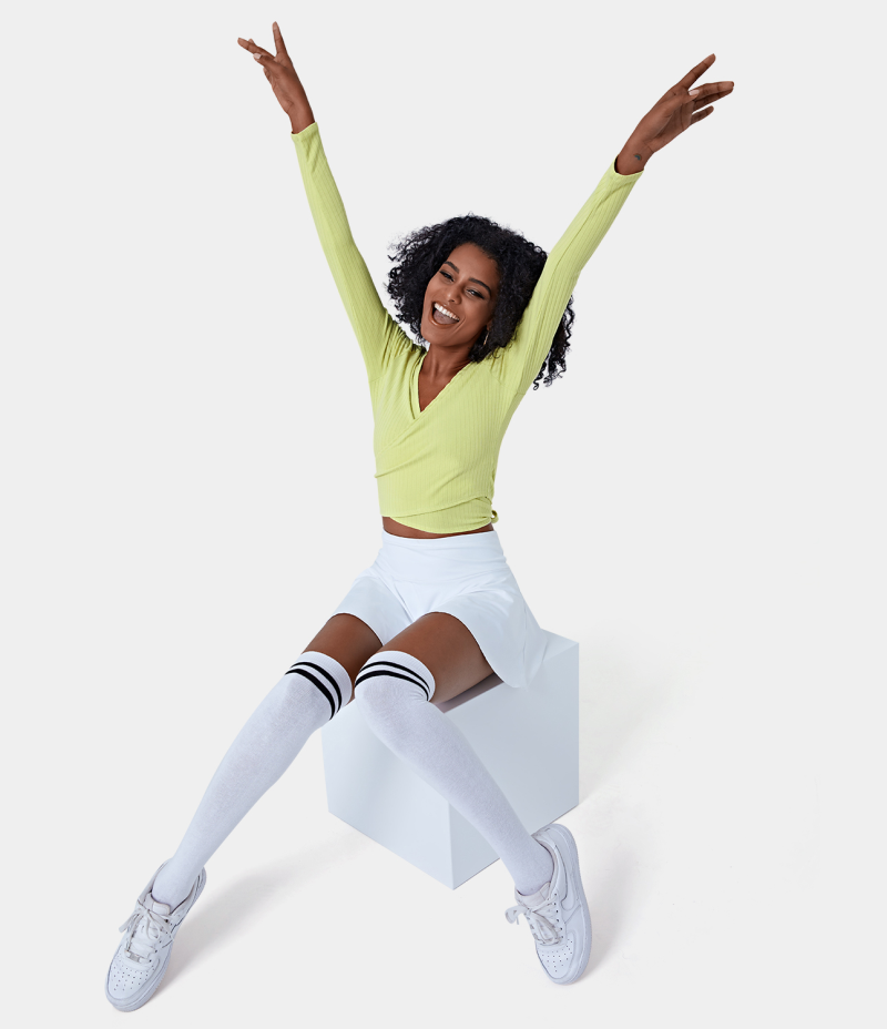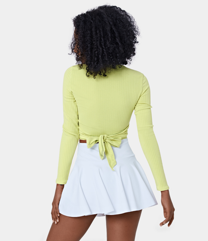 Halara V Neck Crossover Tie Back Plain Cropped Sports Women's Tops Celery Green | JONEACB-65