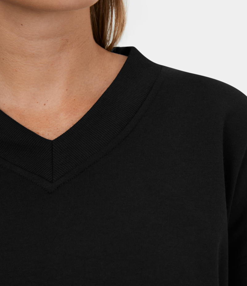 :: Halara V Neck Dropped Shoulder Cropped Casual Pullover Sweatshirt Women's Tops Black | TAQJZSM-68