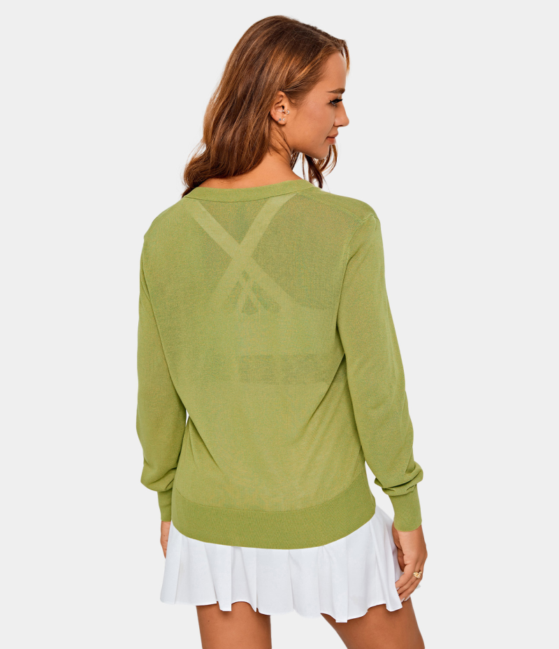 Halara V Neck Front Button Plain Cardigan Women's Tops Fern | XREYDQV-30