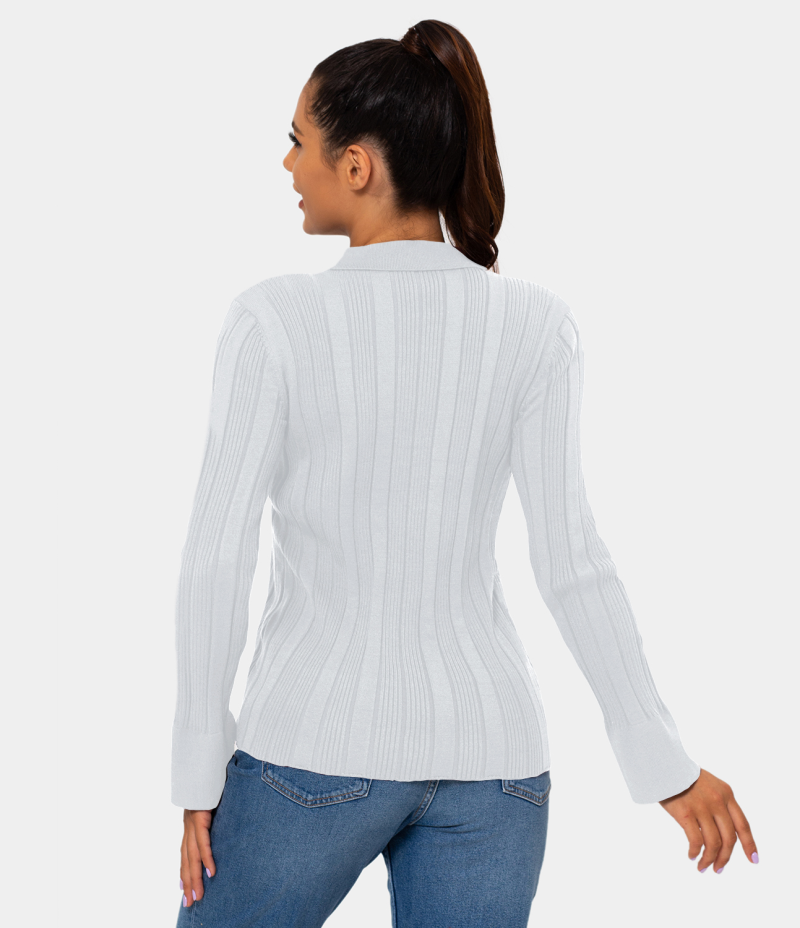 Halara V Neck Half Button Knit Cardigan Women's Tops White | AJTOQBY-54