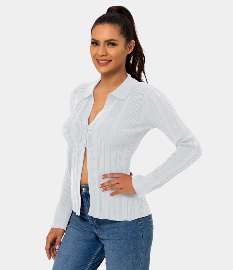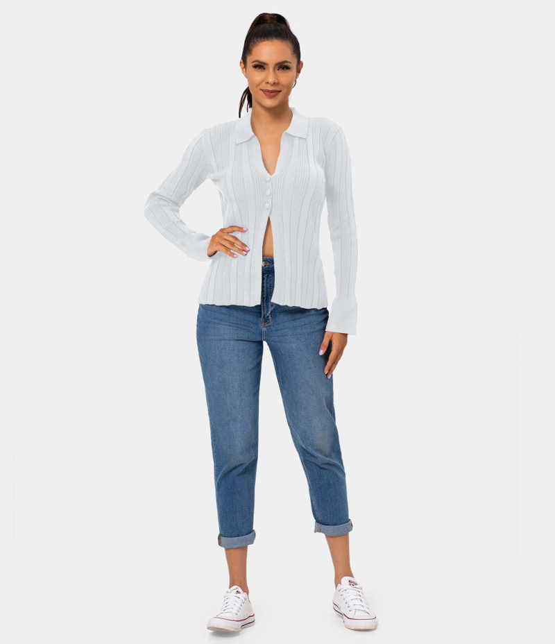 :: Halara V Neck Half Button Knit Cardigan Women's Tops White | AJTOQBY-54
