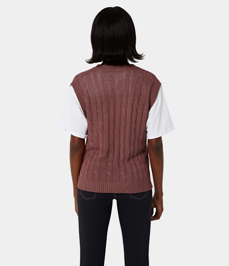 :: Halara V Neck Plain Knit Tank Women's Tops Rosewood Pink | BDISMUP-34