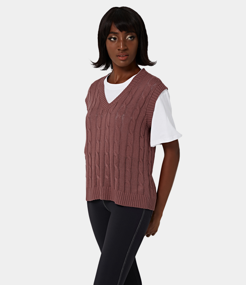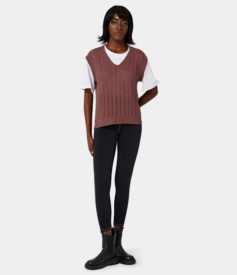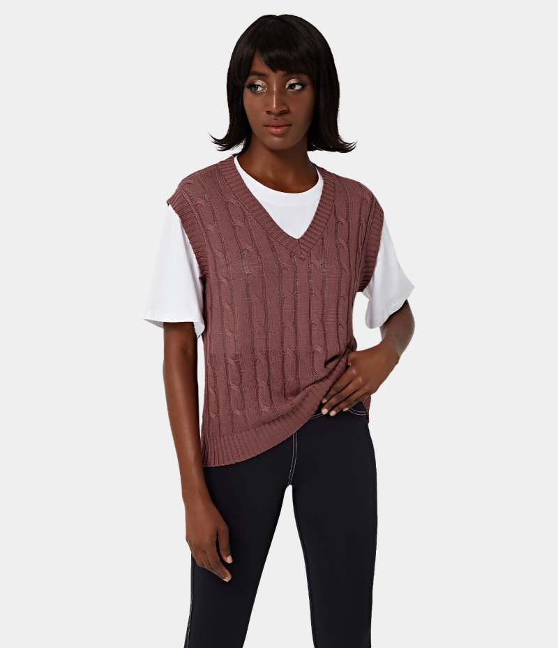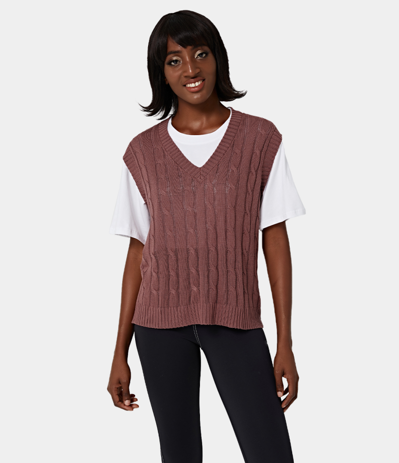 Halara V Neck Plain Knit Tank Women's Tops Rosewood Pink | BDISMUP-34