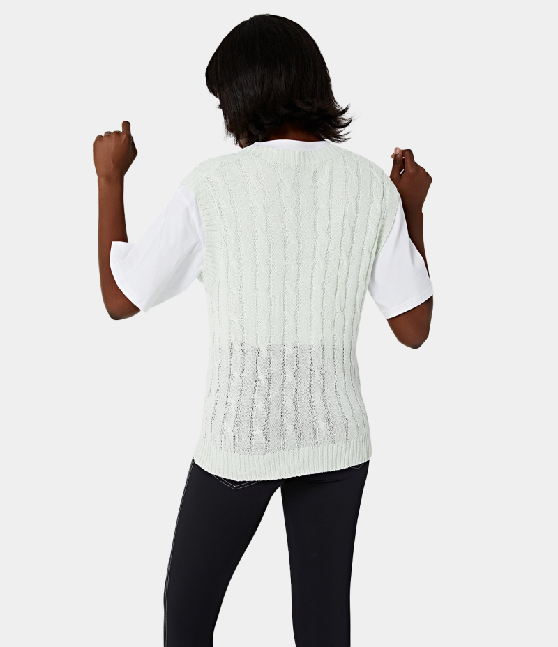 :: Halara V Neck Plain Knit Tank Women's Tops Tea Green | UIZXYVP-51