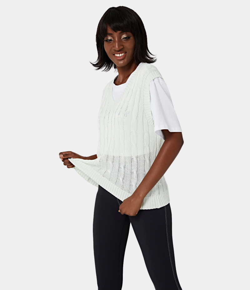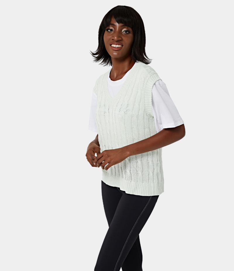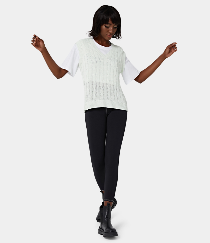 Halara V Neck Plain Knit Tank Women's Tops Tea Green | UIZXYVP-51