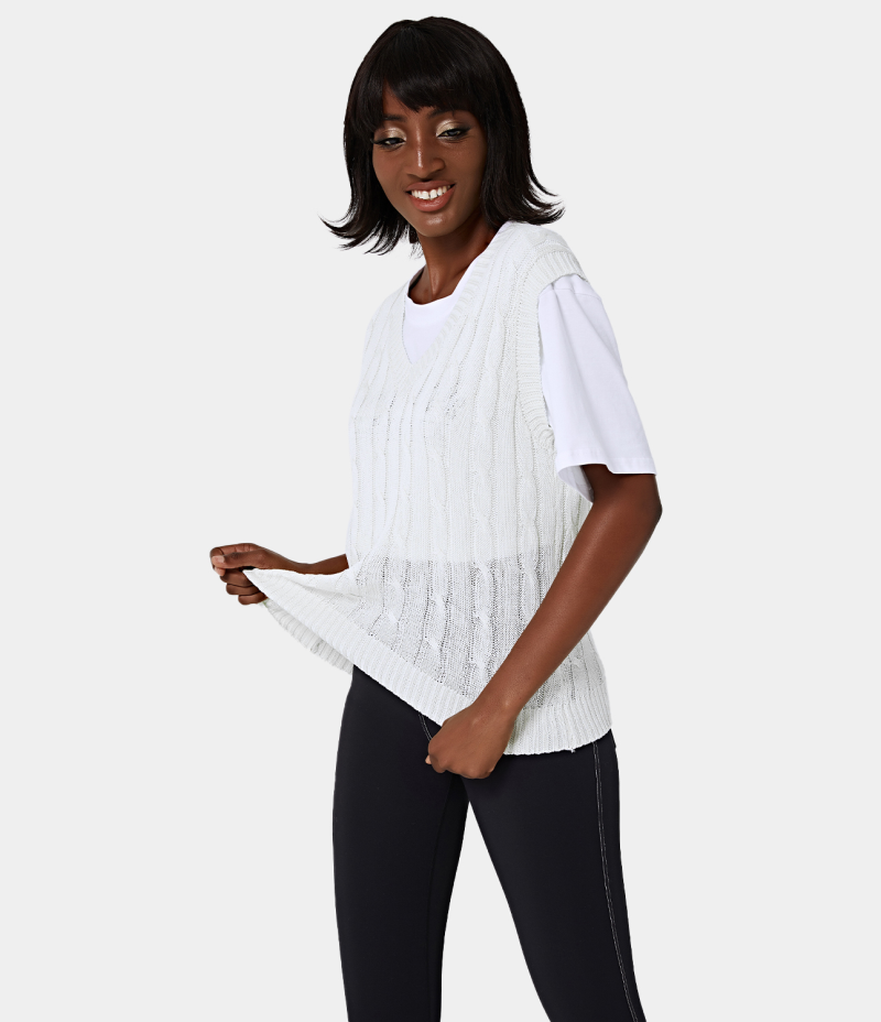 Halara V Neck Plain Knit Tank Women's Tops White | ANCPOTH-81