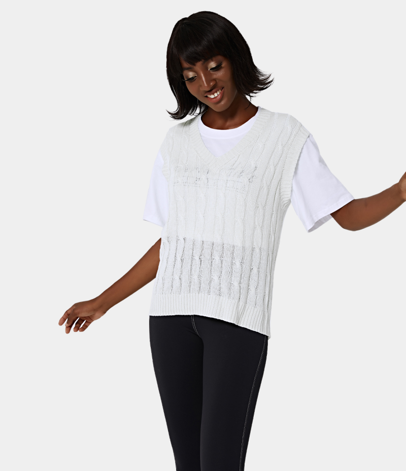 :: Halara V Neck Plain Knit Tank Women's Tops White | ANCPOTH-81