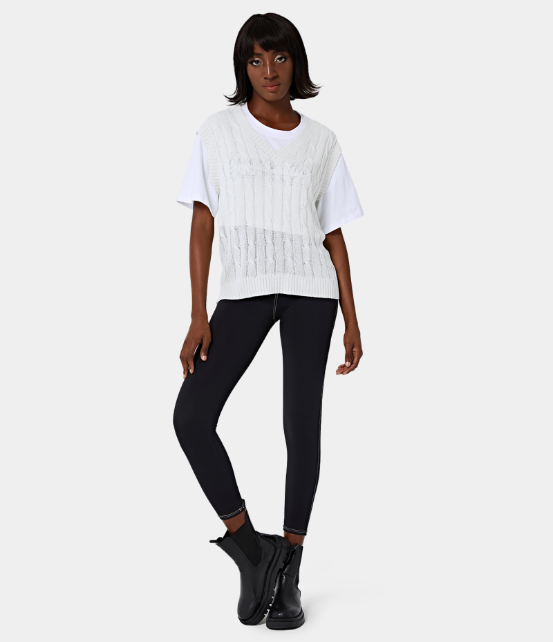 Halara V Neck Plain Knit Tank Women's Tops White | KZOJPUN-25