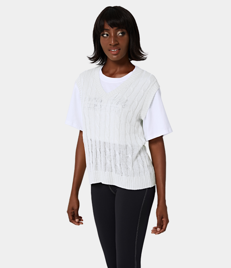 :: Halara V Neck Plain Knit Tank Women's Tops White | KZOJPUN-25