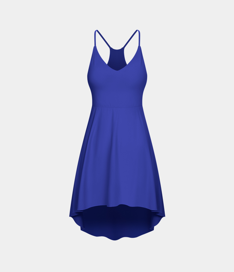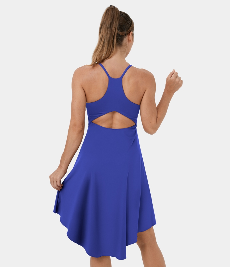 Halara V Neck Racerback Cut Out High Low Barre Ballet Dance Women's Dress Amparo Blue | 826713-XKI