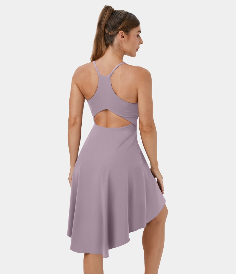 Halara V Neck Racerback Cut Out High Low Barre Ballet Dance Women's Dress Lavender Frost | 342901-NWQ